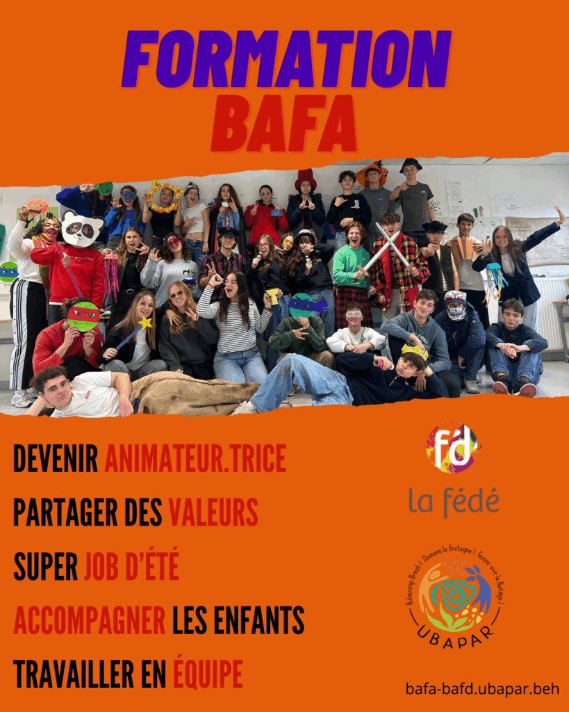 Passe ton BAFA avec l’UBAPAR et Pulsations et enrichis ton bagage d’expériences, de savoirs et savoir-faire en matière de jeux, de travail en équipe et de gestion de groupes d’enfants !