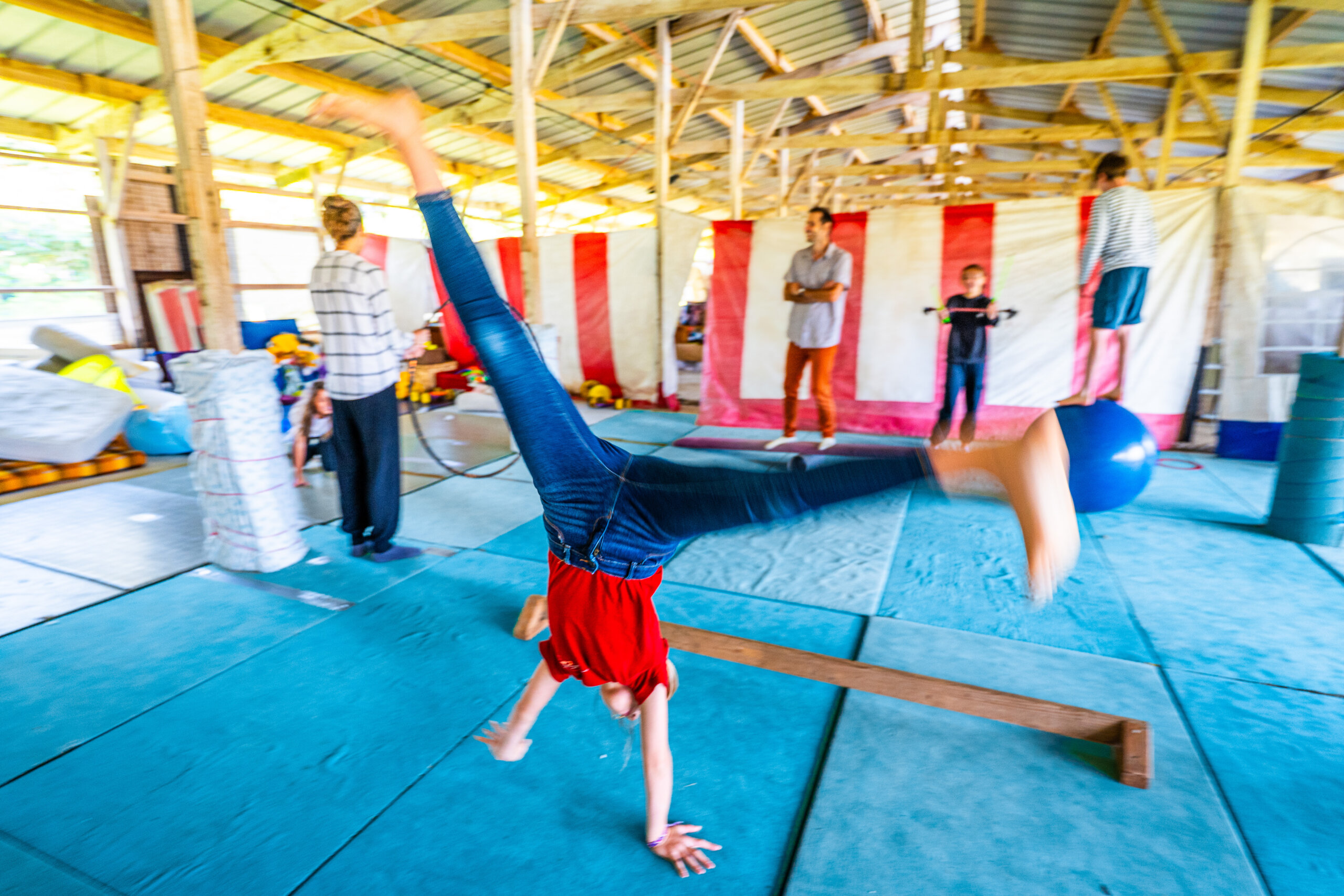 La ferme de Caringa t’ouvre ses bras, ou plutôt ses branches, pour une semaine campée près d’un sous-bois aux mille cabanes, un troupeau de chèvres curieuses et un coin cirque rocambolesque !