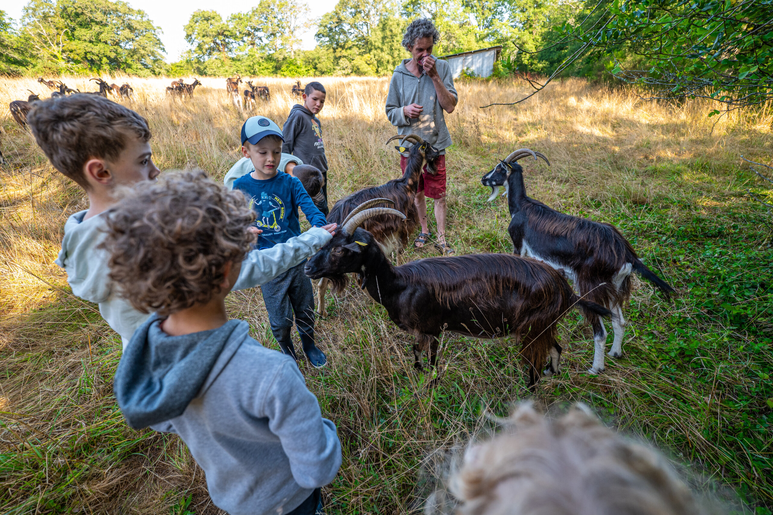 • Rencontre avec les chèvres et les poules qui peuplent la ferme, récolte de patates et oignons pour les repas ;