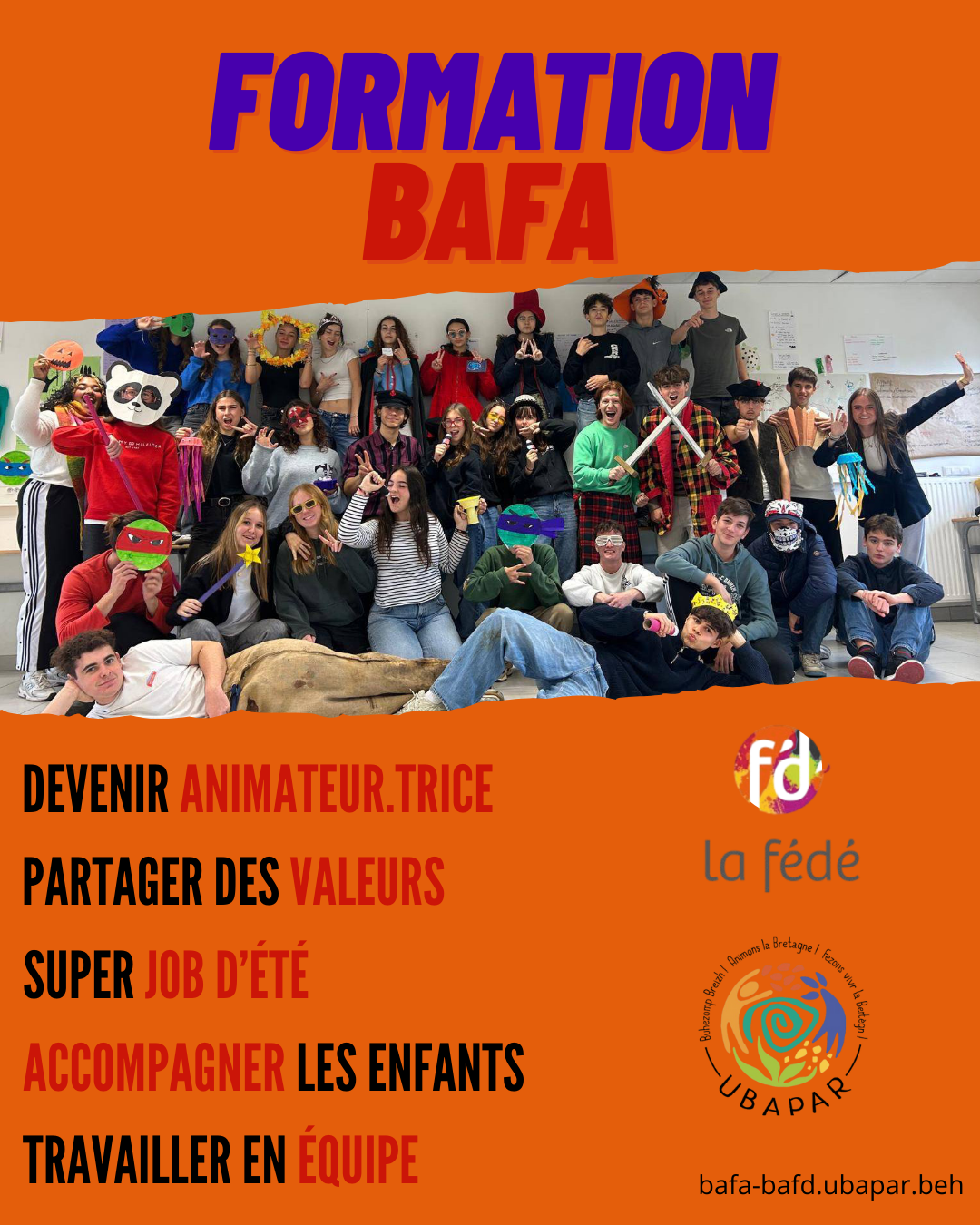 Le BAFA, Brevet d’Aptitude aux Fonctions d’Animateur, est un diplôme qui permet « d’encadrer à titre non professionnel, de façon occasionnelle, des enfants et des adolescents en accueils collectifs de mineurs ».